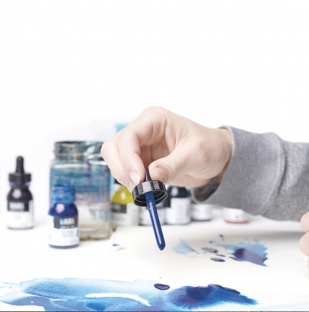 Esta Tinta Acrílica Profissional da Liquitex extremamente fluida é composta por pigmentos super finos, que não precisam de ser diluídos. As tintas secam rapidamente, são permanentes e impermeáveis, sendo ideais para trabalhar em vários tipos de técnicas: efeitos em aguarela, estampagem, aerografia ou caligrafia. Apresentam cores intensas, opacas, transparentes e com boa resistência à luz. Podem ser misturadas com todas as cores acrílicas da Liquitex e respectivos médios. Disponíveis em frasco vidro com pipeta de 30ml e 150ml.